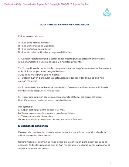 Guia para llevar a la oracíon previamente al Sacramento del Perdon que nos permitirá confesarnos de una manera completa y correcta.